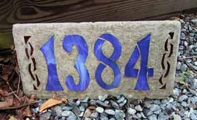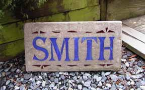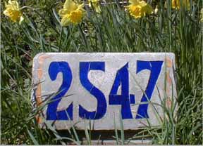 Address stones are also made of cement and glass. Wedge shaped, they stand 7in. high 12in. wide and 5in. deep at the base.